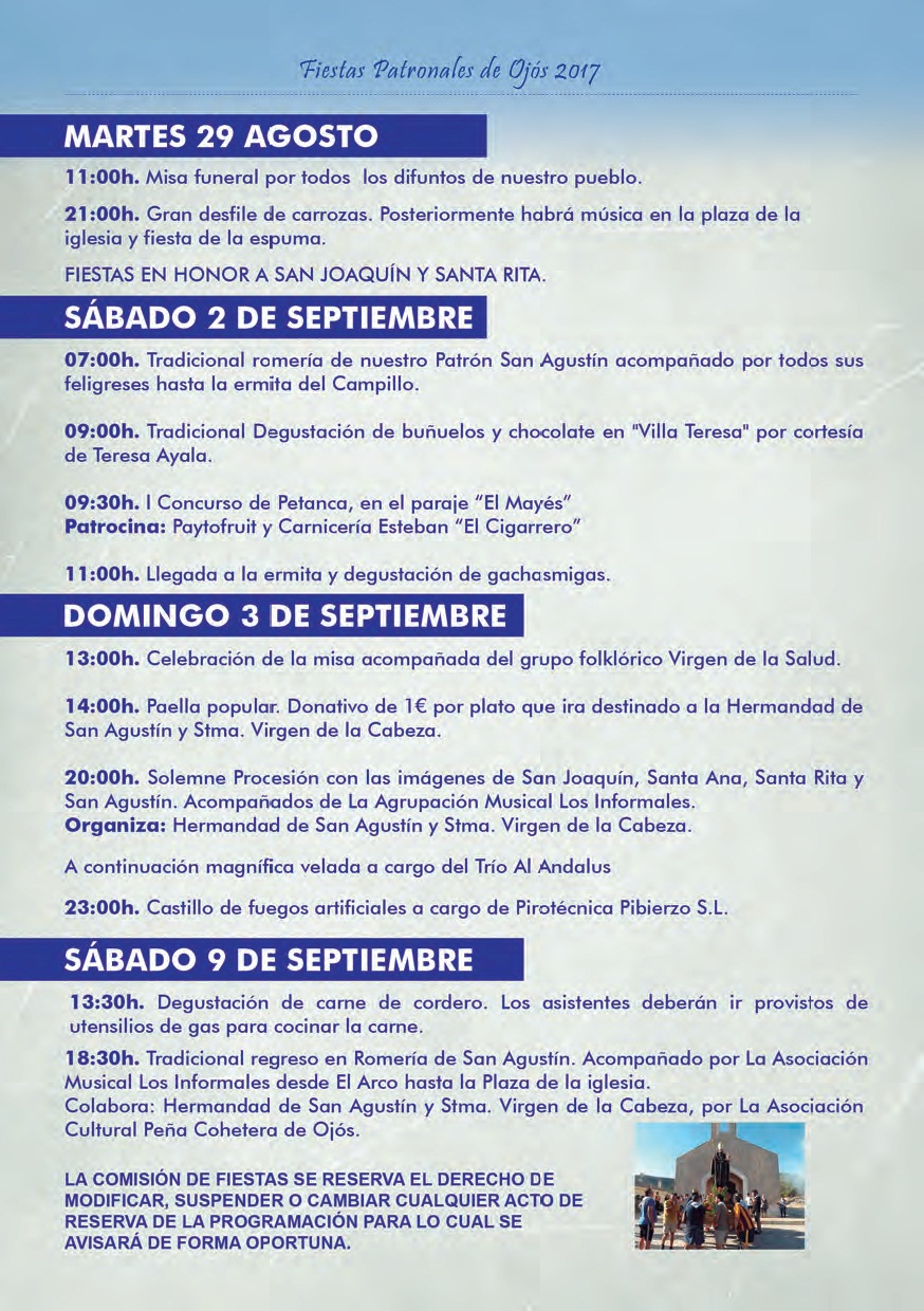 PROGRAMA DE LAS FIESTAS DE OJÓS 2017