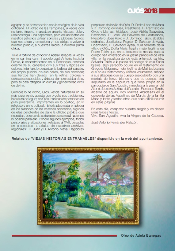PREGÓN DE LAS FIESTAS DE OJÓS 2017 Detalles Categoría de nivel principal o raíz: Fiestas 2018 Categoría: Fiestas Patronales 2018 Publicado: Martes, 07 Agosto 2018 19:40 Visto: 80856 Anterior Siguiente