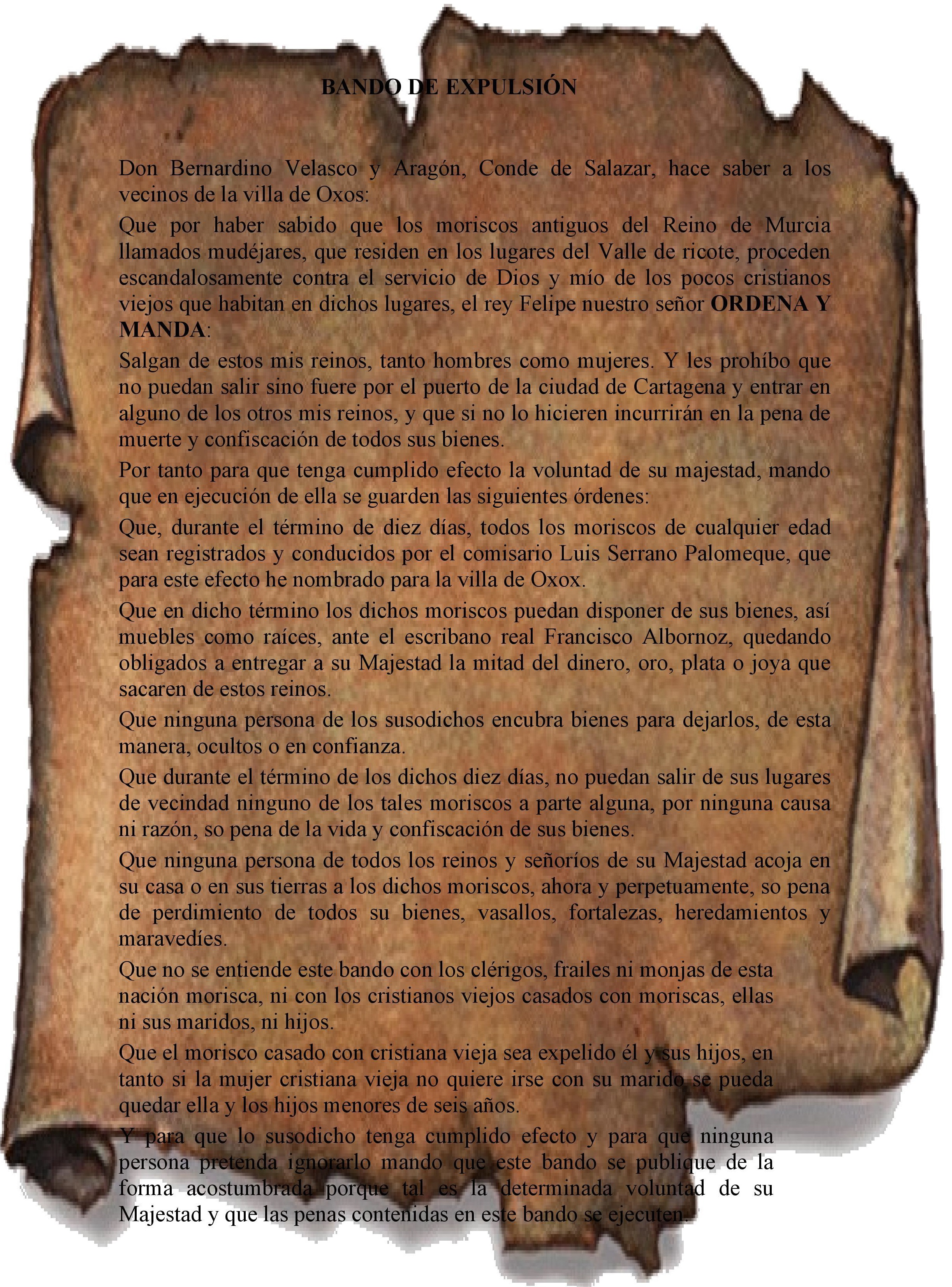 - Lectura del bando de expulsión.