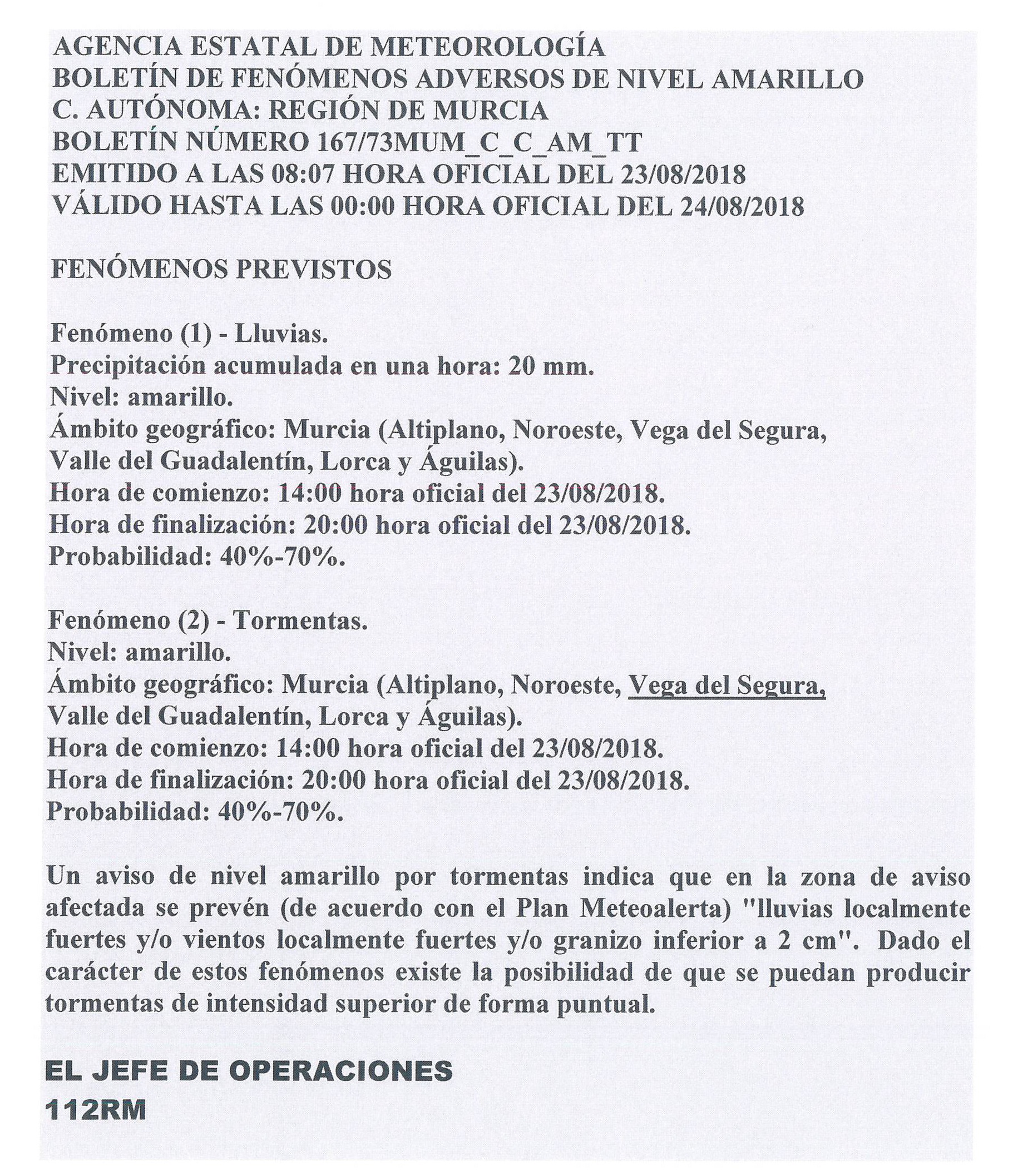 ALERTA POR FENÓMENOS ADVERSOS DE NIVEL AMARILLO Detalles Categoría de nivel principal o raíz: 8.-Información y Atención al Ciudadano Categoría: 8.3.-Participación Ciudadana Publicado: Jueves, 23 Agosto 2018 13:20 Visto: 105555 Anterior Siguiente
