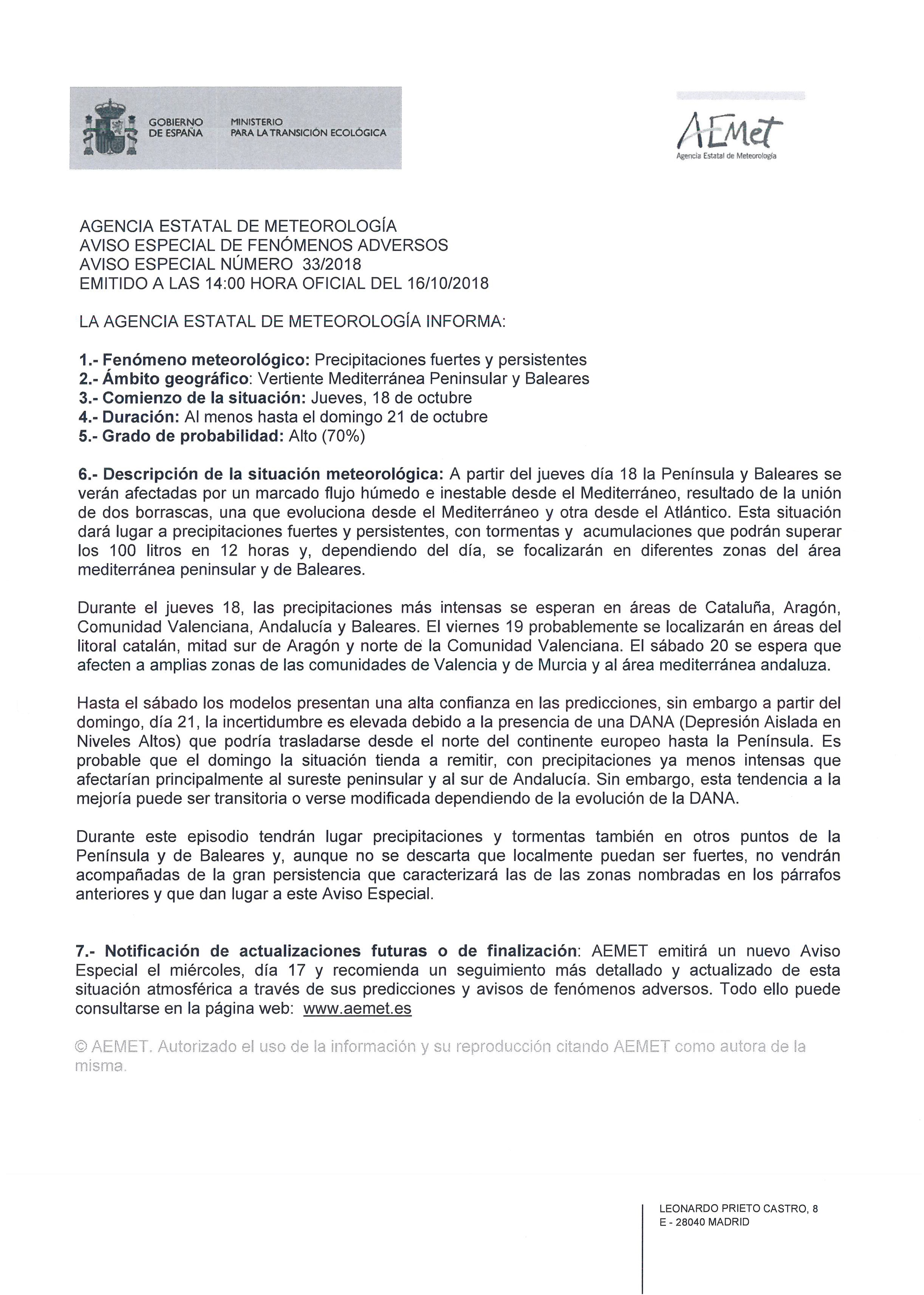 AVISO ESPECIAL DE FENÓMENOS ADVERSOS Detalles Categoría de nivel principal o raíz: 8.-Información y Atención al Ciudadano Categoría: 8.3.-Participación Ciudadana Publicado: Martes, 16 Octubre 2018 17:21 Visto: 29087 Anterior Siguiente