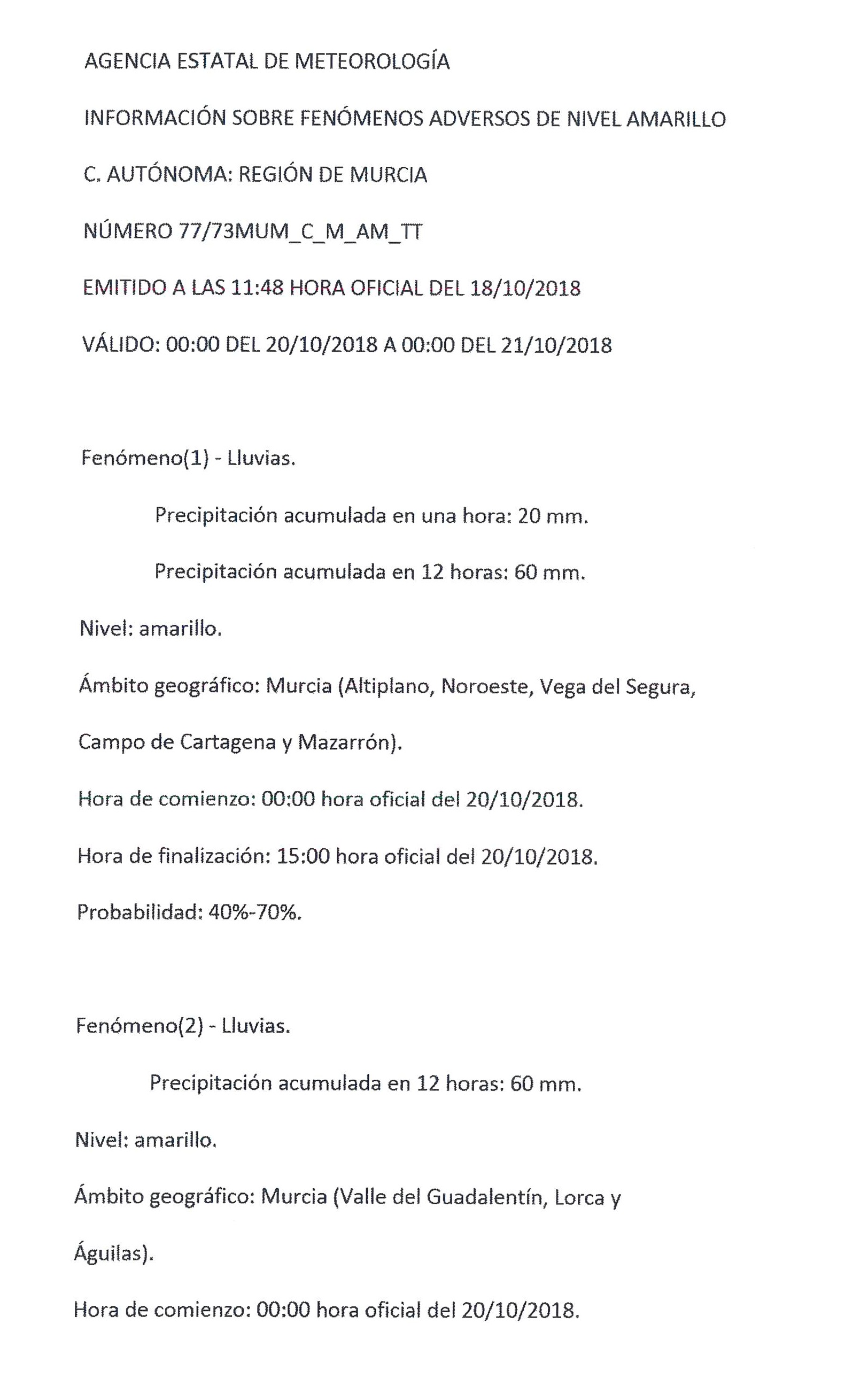 ALERTA POR FENÓMENOS ADVERSOS DE NIVEL AMARILLO Detalles Categoría de nivel principal o raíz: 8.-Información y Atención al Ciudadano Categoría: 8.3.-Participación Ciudadana Publicado: Jueves, 18 Octubre 2018 19:33 Visto: 26523 Anterior Siguiente