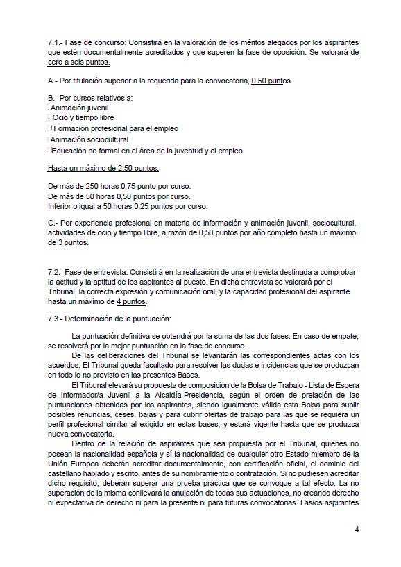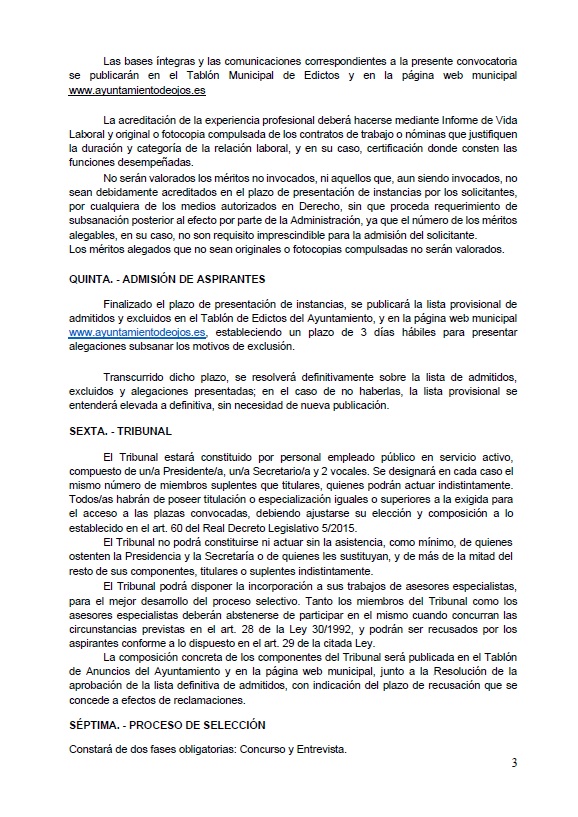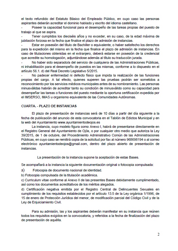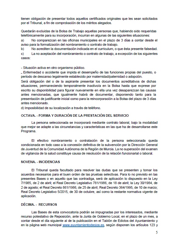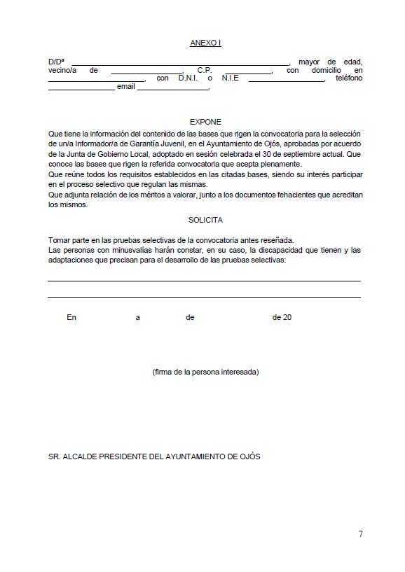 BASES ESPECÍFICAS QUE HAN DE REGIR LA CONVOCATORIA PARA LA SELECCIÓN DE UN/A INFORMADOR/A JUVENIL A MEDIA JORNADA EN EL AYUNTAMIENTO DE OJÓS
