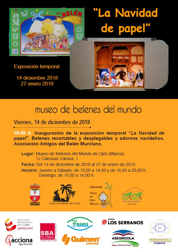 Leer más: PRESENTACIÓN DEL LIBRO "ABUELITA, LLÉVAME AL BELÉN"Exposición de MARÍA JOSÉ CÁRCELES, inaugurada el 9 de diciembre de 2018, por nuestro Alcalde Pablo Melgarejo, acompañado por nuestra Concejal María Encarnación Palazón Palazón, el Conservador de Museos de la Comunidad Autónoma Juan García Sandoval y el Director del Museo de Belenes José Emilio Palazón.