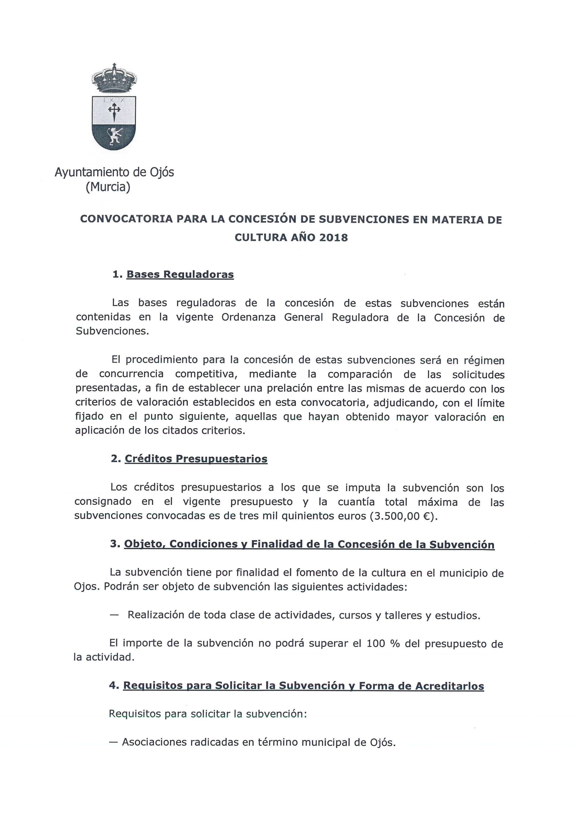 CONVOCATORIA PARA LA CONCESIÓN DE SUBVENCIONES EN MATERIA DE CULTURA AÑO 2018
