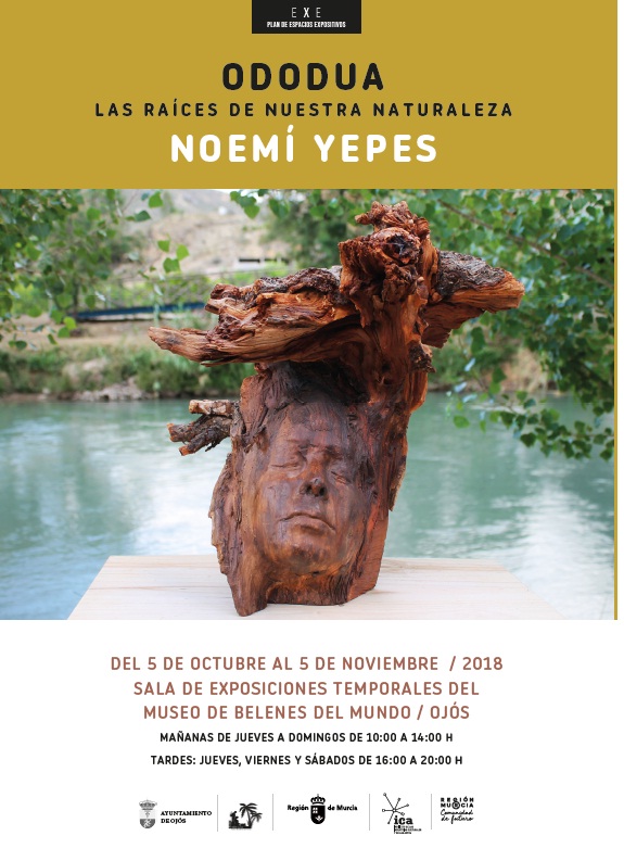 El alcalde del Ayuntamiento de Ojós y la consejera de Turismo y Cultura se complacen en invitarle a la inauguración de la exposición ODODUA DE NOEMÍ YEPES que tendrá lugar viernes, 5 de octubre, a las 19:00 h en la Sala de Exposiciones Temporales del Museo de Belenes del Mundo en Ojós. Os esperamos a todos!