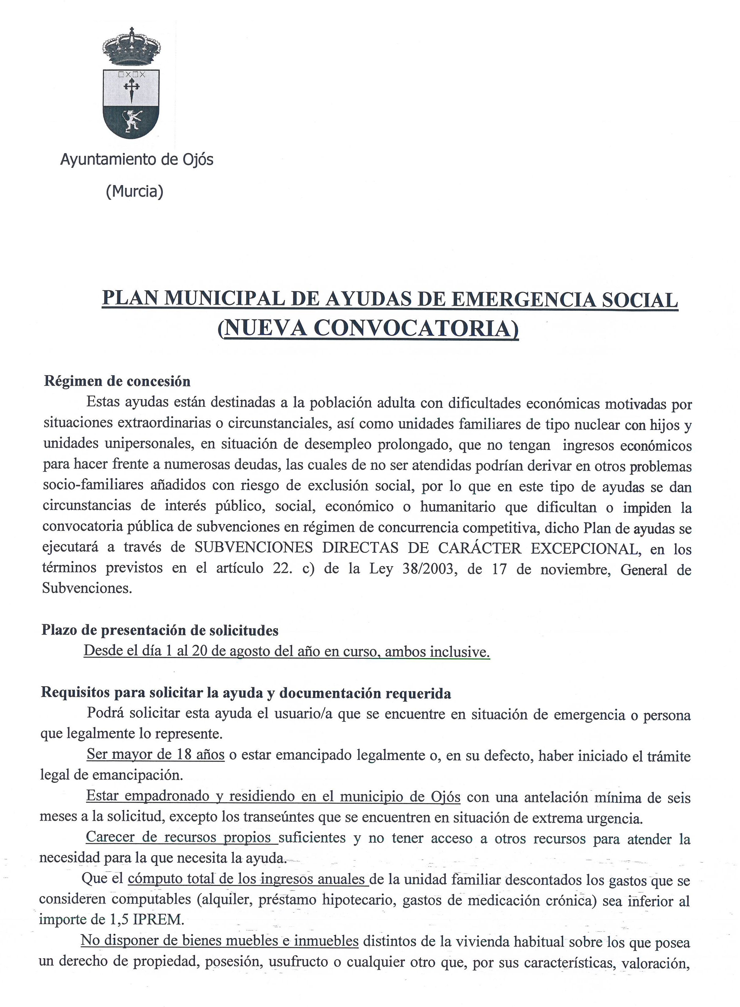 - PLAN MUNICIPAL DE AYUDAS DE EMERGENCIA SOCIAL