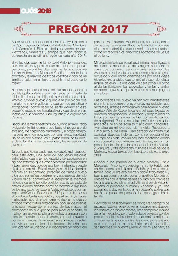 PREGÓN DE LAS FIESTAS DE OJÓS 2017