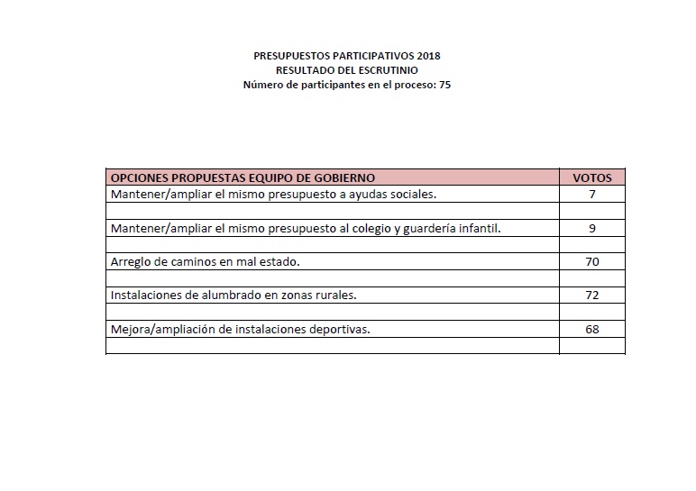 PRESUPUESTOS PARTICIPATIVOS 2018. RESULTADO DEL ESCRUTINIO