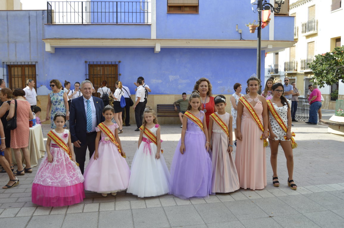 Coronación de las Reinas 2018, Alba Pino Avilés y Ana Cascales Loba y de las Reinas infantiles, Berta Gambín Miñano, Rocio Salinas Palazón, Noa Palazón Luque, María Mercedes Palazón Luque y Paula Melgarejo Torregrosa.
