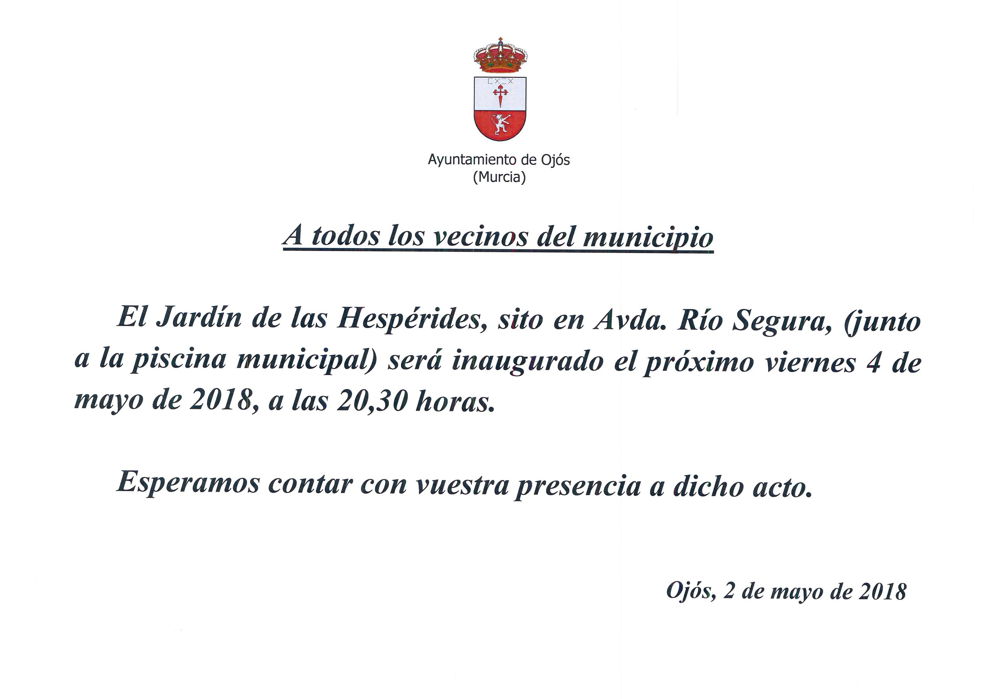 Leer más: INAUGURACIÓN DEL JARDÍN DE LAS HESPÉRIDESINVITACIÓN A LA INAUGURACIÓN DEL JARDÍN DE LAS HESPÉRIDES