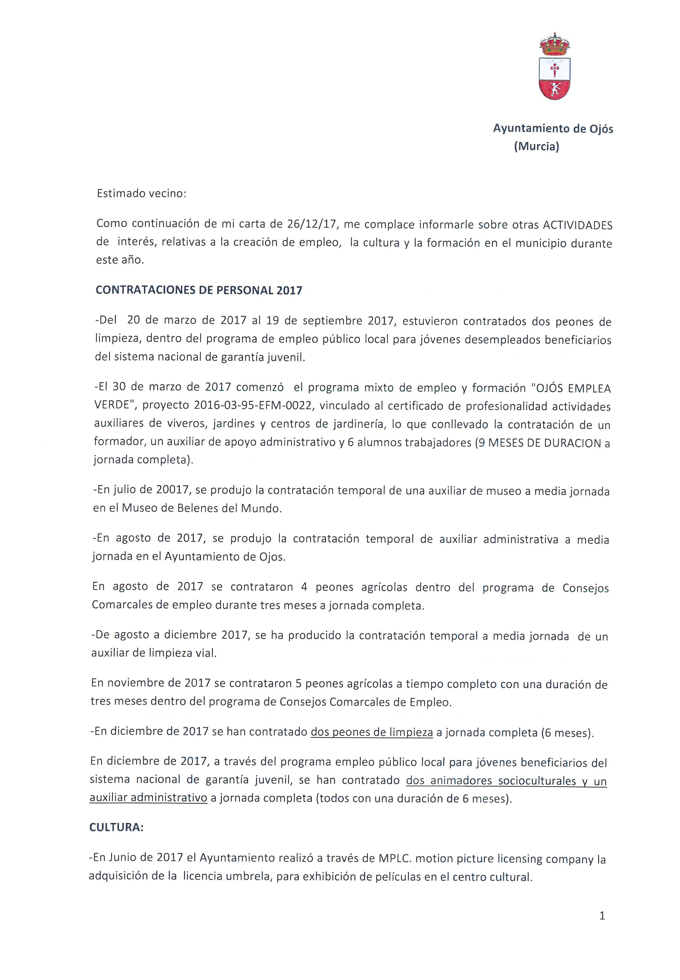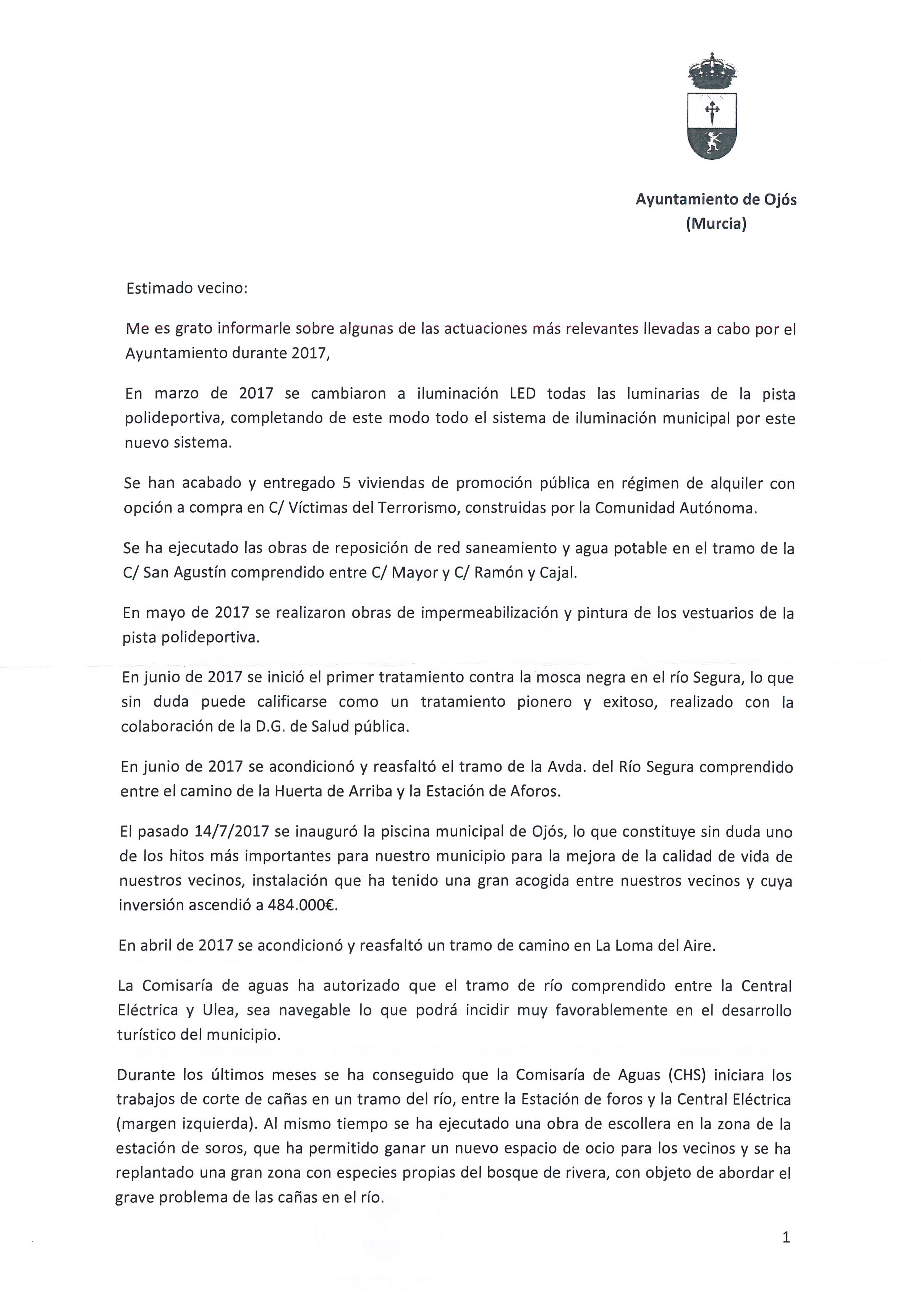CARTA DEL ALCALDE A LOS VECINOS, CONTINUACIÓN 27-12-2017