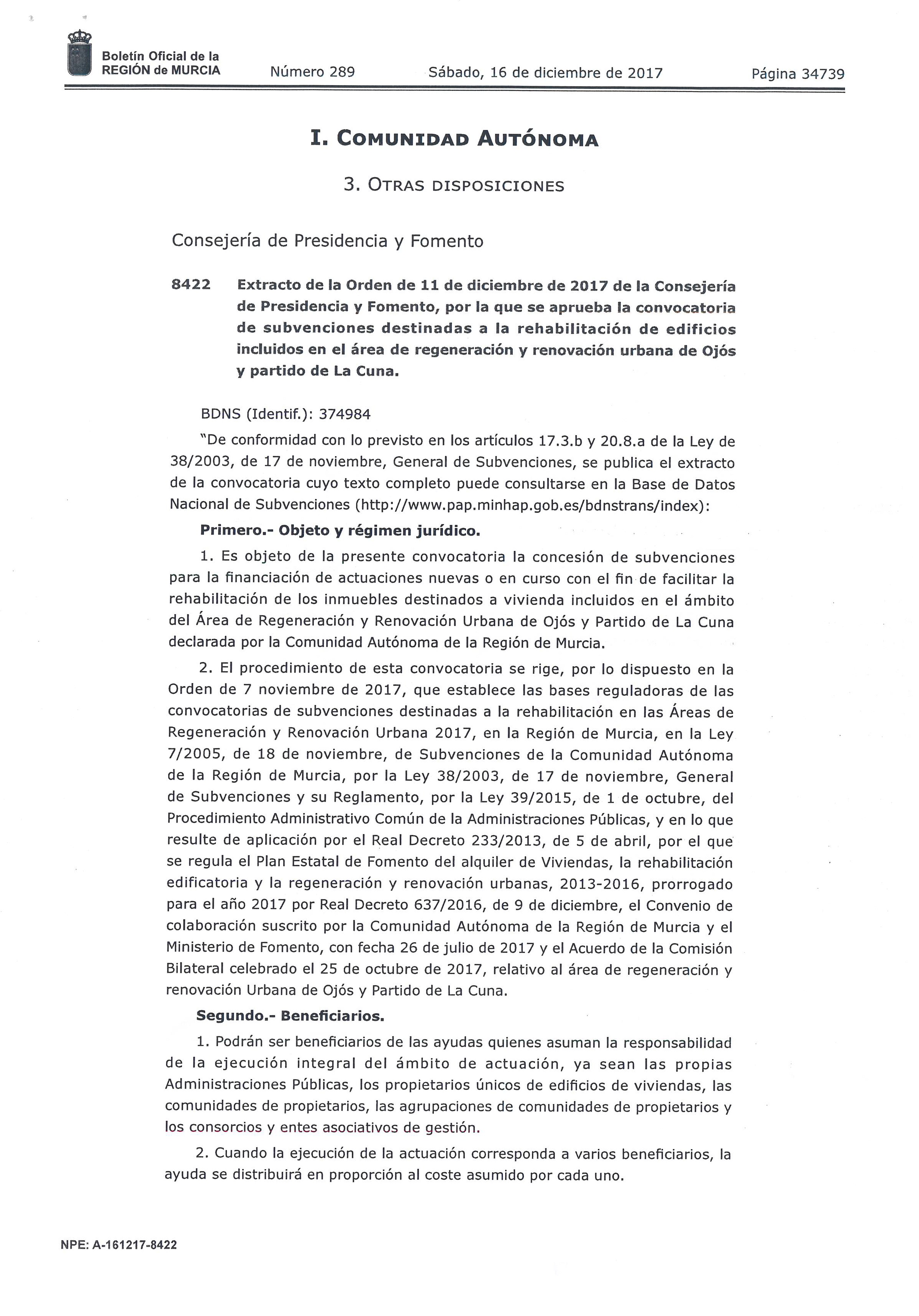 EXTRACTO ORDEN CONVOCATORIA SUBVENCIONES REHABILITACIÓN VIVIENDAS ARRU OJÓS
