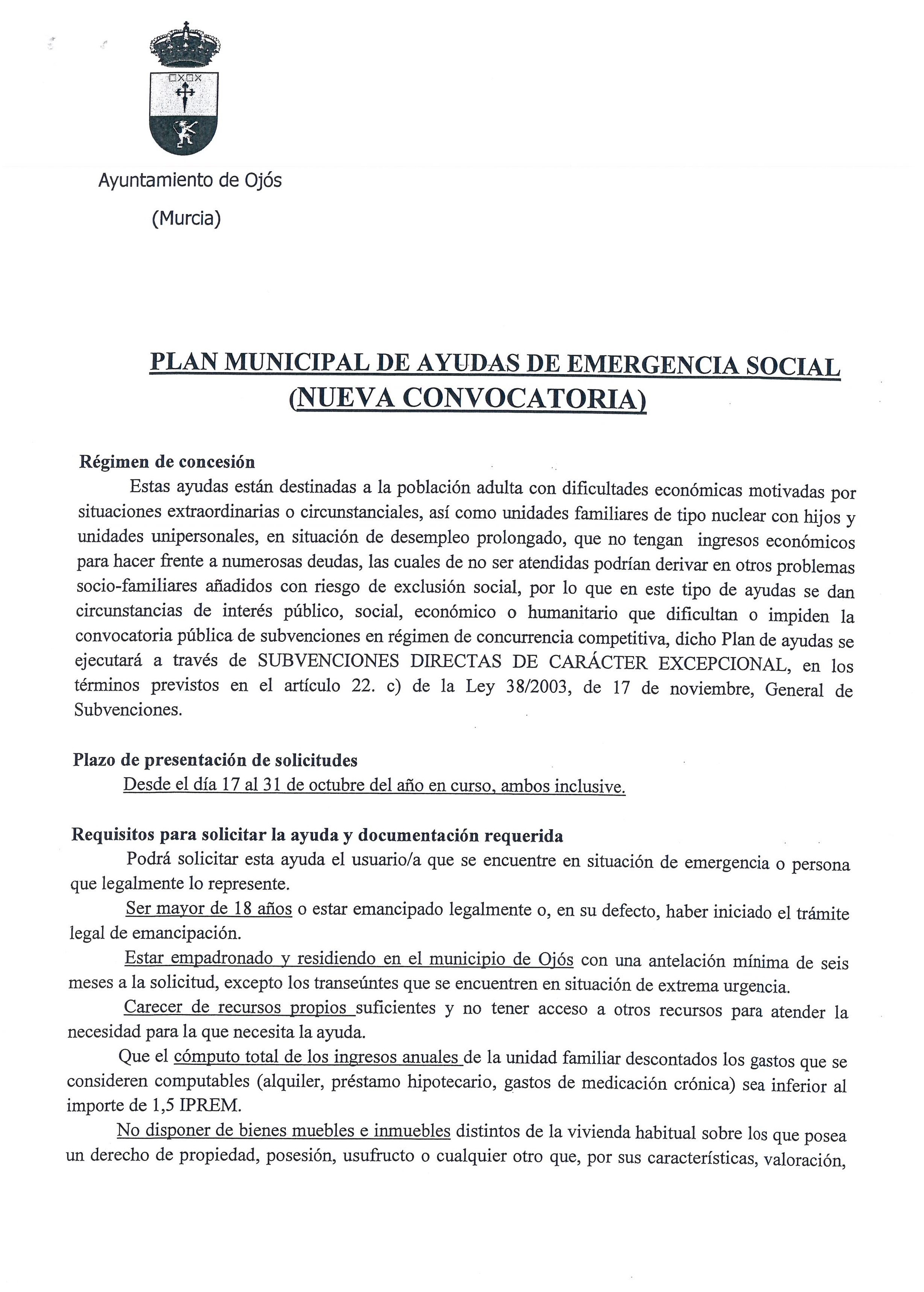 PLAN MUNICIPAL DE AYUDAS DE EMERGENCIA SOCIAL