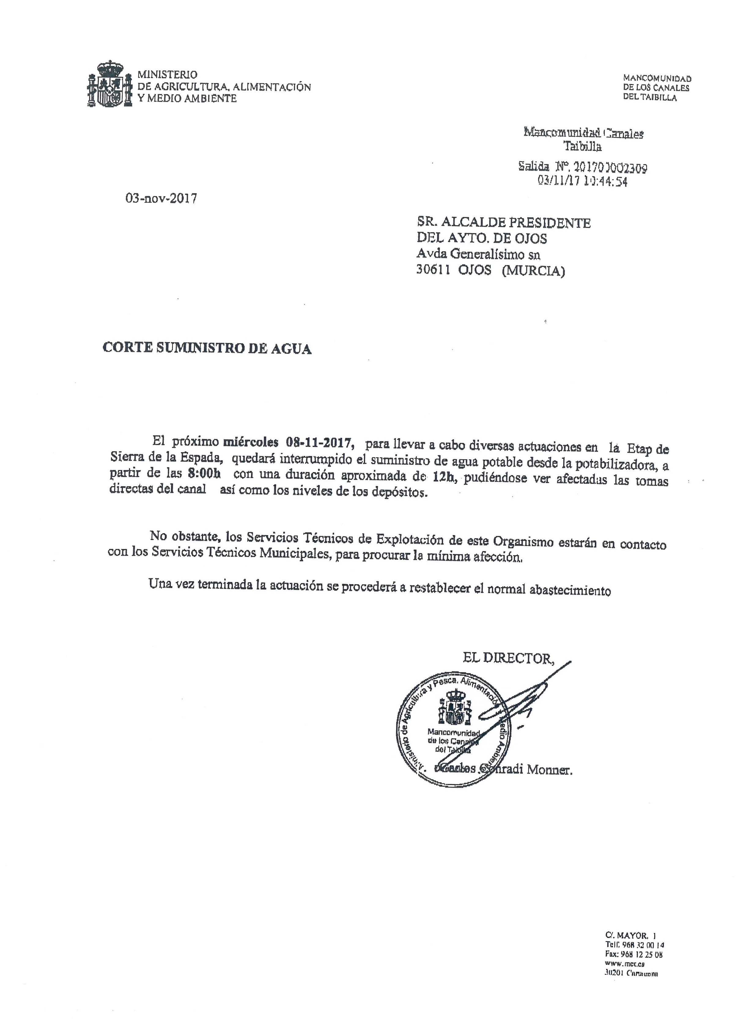 AVISO DE CORTE SUMINISTRO DE AGUA