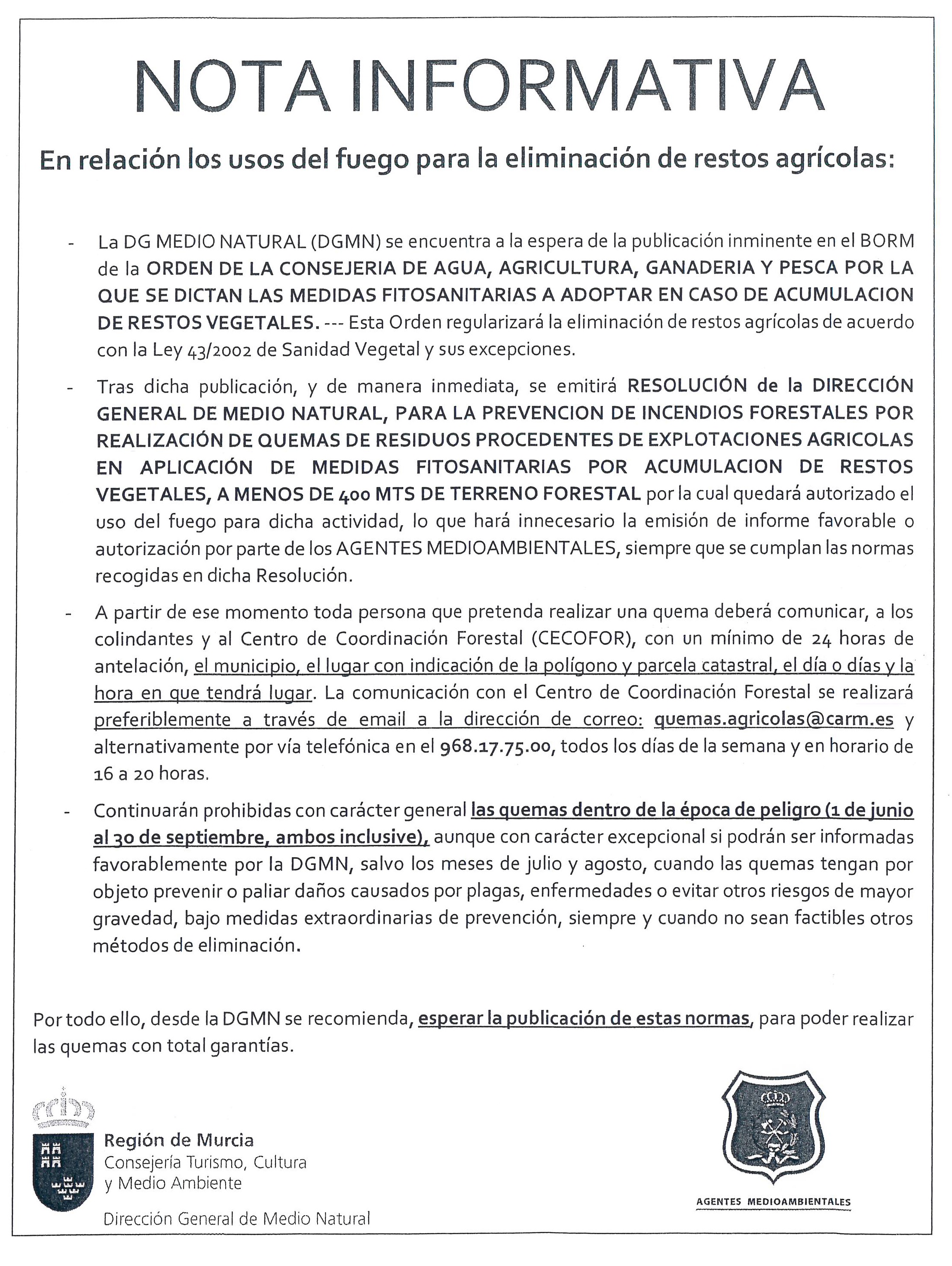 INFORMACIÓN SOBRE QUEMA DE RESIDUOS AGRÍCOLAS